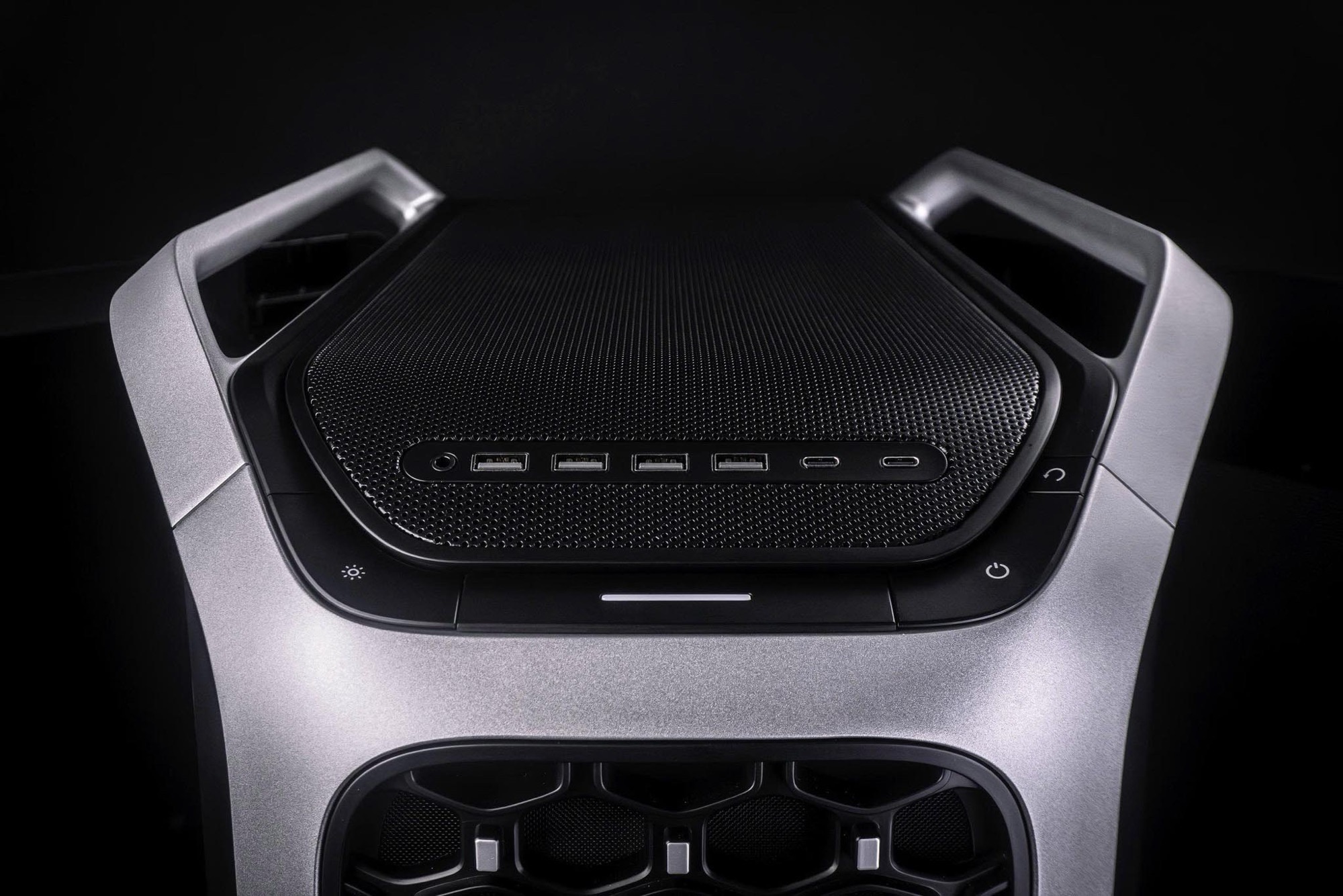 LED-strips aan de onderkant zorgen voor indirecte verlichting, die bediend kan worden via een speciale knop aan de bovenkant van de behuizing. Direct naast deze knop bevinden zich vier USB-A poorten, twee USB-C poorten en een 3,5 mm hoofdtelefoonaansluiting. De microfoon van een aangesloten headset kan worden gedempt met een knop op de behuizing. Cooler Master heeft nog niet alle specificaties bevestigd; de productpagina werd kort na de release offline gehaald, maar zal naar verwachting snel terugkeren.
