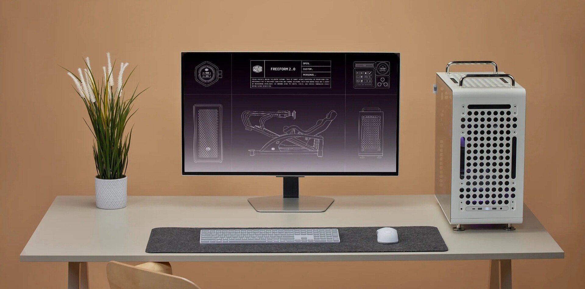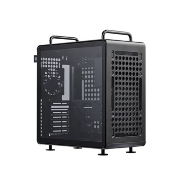 De nieuwe Cooler Master QUBE 540 wordt aangeprezen als een zeer veelzijdige pc-behuizing met een relatief lage prijs. Dankzij de afmetingen van 42,5 x 42,5 x 22,5 cm is hij compatibel met moederborden in ITX- tot E-ATX-formaat en grafische kaarten die tot 41,5 cm lang zijn. Grote ronde openingen aan de voor- en achterkant kunnen worden gebruikt om accessoires direct aan de behuizing te bevestigen.
