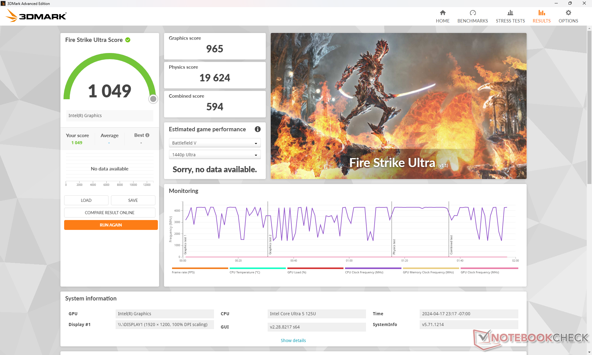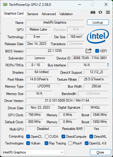 De nieuwe Meteor Lake-U processoropties onderscheiden zich door hun geïntegreerde NPU's om lokale AI-taken te versnellen. Dergelijke functies zijn echter nog niet op grote schaal beschikbaar, dus de overgrote meerderheid van de gebruikers kan de NPU op het moment van dit schrijven nog niet gebruiken. De nieuwe Core Ultra 5 125U en Ultra 7 155U zijn verder identiek aan de Core i7-1355U in zowel CPU- als GPU-prestaties.