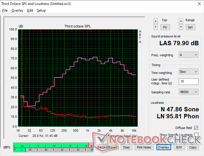 (±) | luidspreker luidheid is gemiddeld maar goed (79.9 dB)
