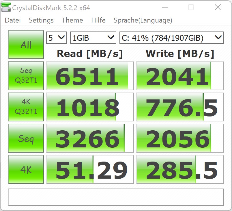 In de benchmark die we draaien, doet de Intel Core i9-12900K het erg goed, ook al kan hij onder belasting niet zijn volledige prestaties benutten. De prestatieverhoging ten opzichte van de Corsair One i160 is immens. In de algemene beoordeling biedt het huidige systeem 48% meer prestaties.