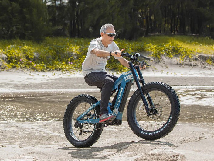 Het frame van de soft tail e-bike helpt schokken en trillingen te absorberen voor een soepelere rit. Het model kan lasten tot 200 kg dragen en weegt zelf 35 kg. De Cyrusher Hurricane e-bike kan nu voorbesteld worden voor US$5,999/£5,699/€5,699. U kunt kiezen uit een blauwe of witte uitvoering en de elektrische fiets wordt op of voor 23 januari in de VS of 23 februari in Europa geleverd.