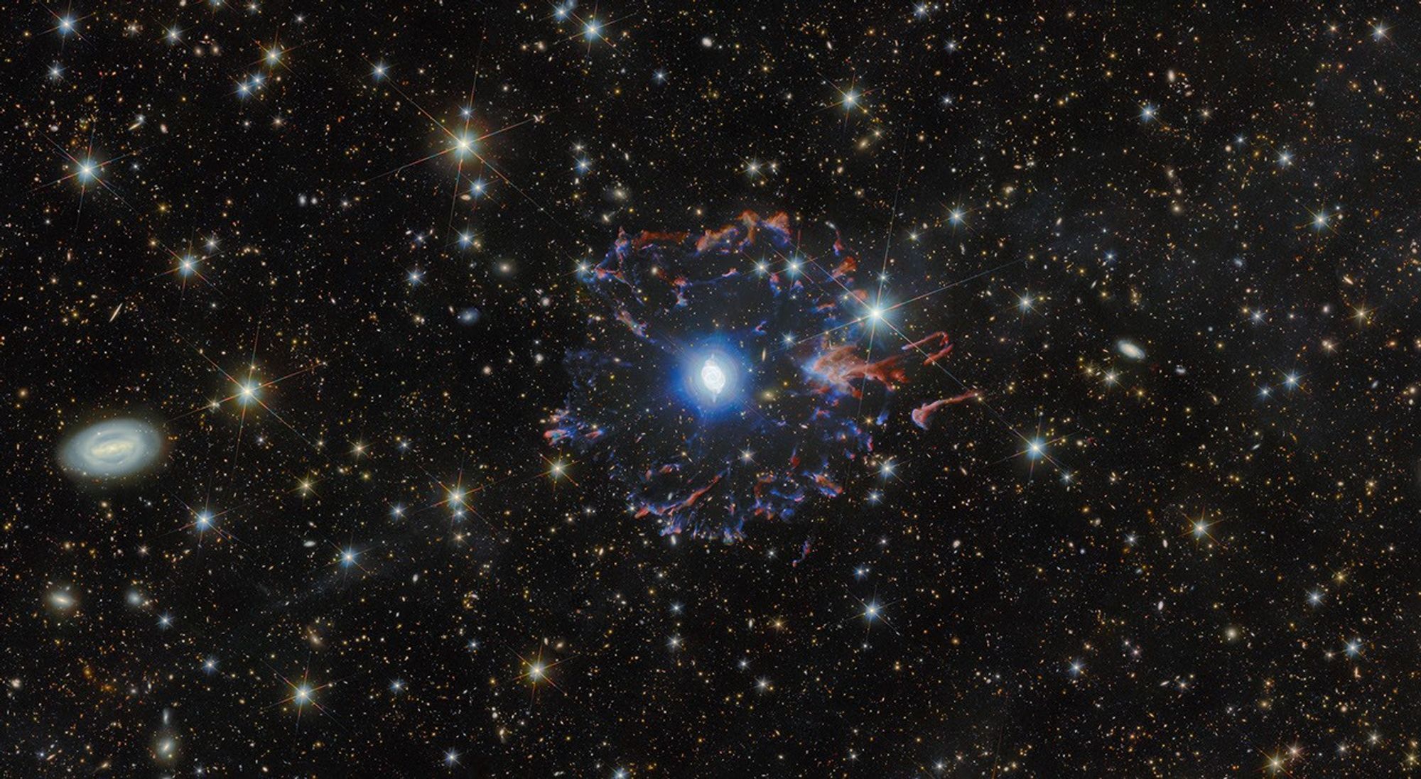 Maar onlangs hebben de Hubble- en Euclid-telescopen nieuwe beelden van deze structuur gemaakt, die de complexiteit van deze nevel benadrukken en een ongelooflijk spektakel bieden. Op de eerste foto, gemaakt door Euclid, is namelijk een kleurrijke halo van gas te zien die van de ster weg lijkt te bewegen.
