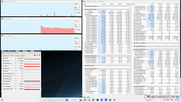 We kunnen een tijdelijk maximaal verbruik van 65 W registreren uit de kleine (6,4 x 6,4 x 2,8 cm) 65 W wall wart AC adapter wanneer zowel de CPU als de GPU op 100 procent gebruik staan. Dit verbruik zou snel afnemen als de maximale Boost-snelheden onhoudbaar zijn op het model, zoals blijkt uit de onderstaande screenshots.