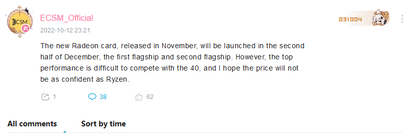 De astronomisch hoge prijzen van Ada Lovelace hebben de aandacht verlegd naar AMD's aankomende Radeon RX 7000 grafische kaarten. Buiten een lek door Angstronomicsis er weinig bekend over hun prestaties. Tot overmaat van ramp moet men wachten tot 3 november om de grafische kaarten te zien. De wachttijd om er een te kopen zal nog veel langer zijn, zegt Bilibili leaker Enthusiast Citizen.