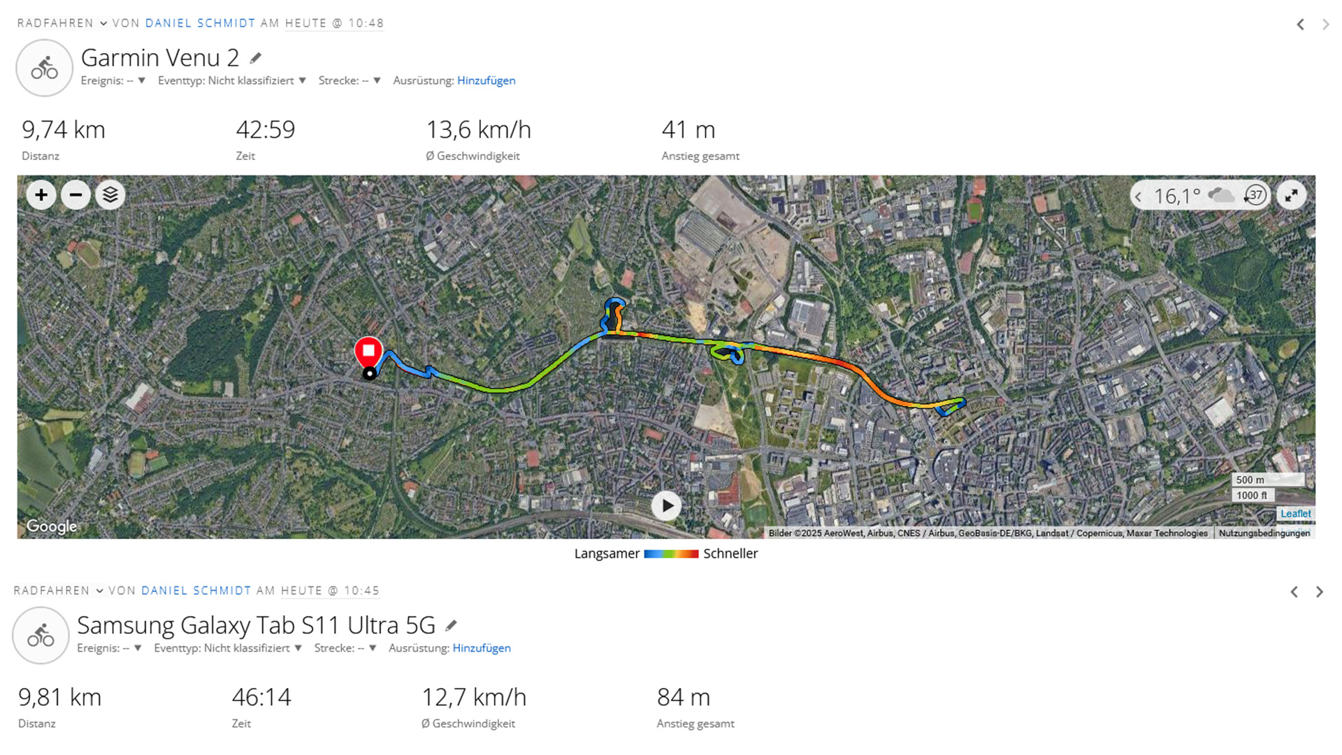 Daarnaast vergeleken we onze Samsung tablet met de Garmin Venu 2 fitness smartwatch tijdens een fietstocht. Deze hield onze route nauwkeurig bij en week maar een klein beetje af van het pad dat we namen. Hierbij moet opgemerkt worden dat dit waarschijnlijk voornamelijk geldt voor de 5G-versie die we getest hebben, aangezien de Wi-Fi-versie van de kleinere Tab S11 die we getest hebben, vertoonde aanzienlijk slechtere positioneringsmogelijkheden.