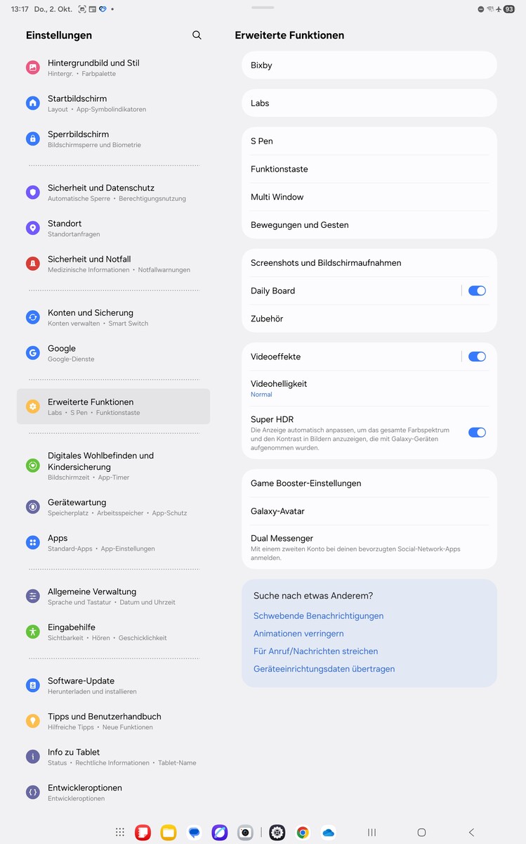 Samsung heeft de DeX-modus aanzienlijk vernieuwd. Deze kan nog steeds via een kabel of draadloos op een extern scherm worden geprojecteerd, maar kan nu ook volledig direct op de tablet worden gebruikt. Schakelen tussen de conventionele tabletmodus en de DeX-modus kan met een eenvoudig veegbeweging, waardoor vensters en apps naar wens in grootte en positie kunnen worden aangepast. Dit wordt aangevuld door de ondersteuning van maximaal vier desktops.