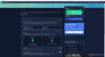 De WLAN looptijd is ongeveer gelijk aan die van het model van vorig jaar, aangezien de batterijcapaciteit nog steeds 80 Wh bedraagt. Opladen van leeg naar vol duurt slechts 35 minuten als Rapid Charge is ingeschakeld, vergeleken met 1,5 tot 2 uur bij de meeste andere laptops.