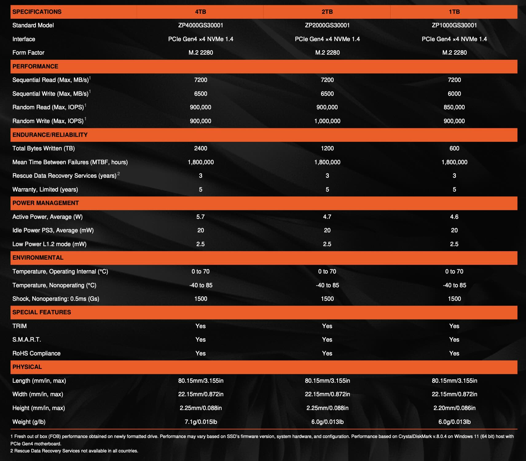 De snelheden komen duidelijk niet in de buurt van PCIe Gen 5 schijven, wat nauwelijks een verrassing is. Voor de meeste dagelijkse werkzaamheden zouden de prestaties echter voldoende moeten zijn. Het uithoudingsvermogen heeft ook een klap gekregen - de FireCuda X1070 SSD heeft nu officiële scores van slechts 2.400, 1.200 en 600 TBW voor de 4 TB, 2 TB en 1 TB varianten, terwijl de 530R scores heeft van respectievelijk 5.050, 2.400 en 1.100 TBW.
