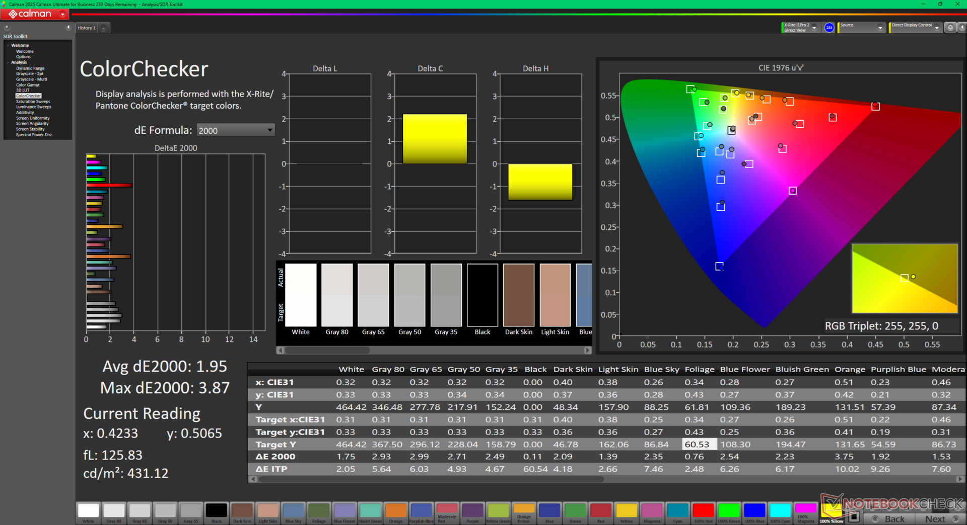 ΔE ColorChecker Calman: 1.95 | ∀{0.5-29.43 Ø4.78}