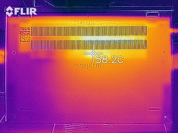 Volgens onze metingen kunnen de oppervlaktetemperaturen van de Dell notebook oplopen tot 45,3 °C (113,54 °F) onder belasting. De Lenovo laptop wordt behoorlijk warm, maar nooit zo heet dat je hem niet op je schoot kunt leggen. Ook de polssteun wordt nooit warm, zodat de laptop onder alle omstandigheden voor werk kan worden gebruikt
