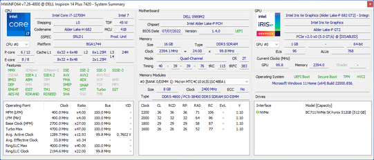 | 87.2 % v7 (old) | 09-2022 | Dell Inspiron 14 Plus 7420 i7-12700H, GeForce RTX 3050 4GB Laptop GPU | 1.7 kg | 18.87 mm | 14.00" | 2240x1400 | |