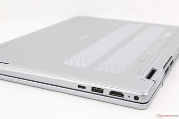 Alle poorten van het oudere Inspiron 14 Plus 7420 ontwerp zijn terug. De HDMI-poort is echter gedegradeerd naar 1.4 en Dell geeft zelfs expliciet aan dat de maximale uitvoer beperkt is tot 1080p60 zonder ondersteuning voor 2K of 4K. Wij raden dus ten zeerste aan om DisplayPort-over-USB-C te gebruiken als u 2K of 4K externe monitoren wilt aansluiten.
