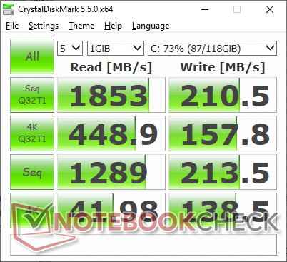 Het gebruik van de batterij beperkt de prestaties niet. Een 3DMark 11-test op batterijen levert een score op van respectievelijk 3533 en 5233 punten, vergeleken met 3510 en 5128 punten bij gebruik op het lichtnet.