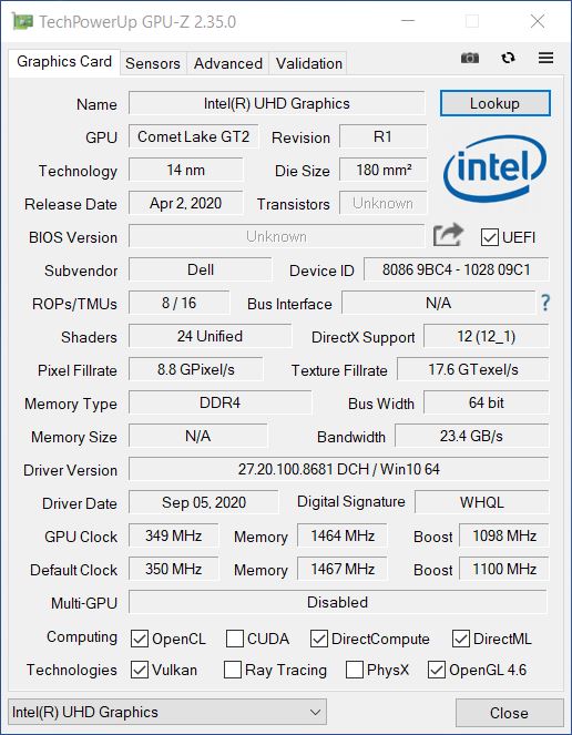 | 83.6 % v7 (old) | 01-2021 | Dell Latitude 15 5511-VNJNW i5-10400H, UHD Graphics 630 | 1.9 kg | 25 mm | 15.60" | 1920x1080 | |