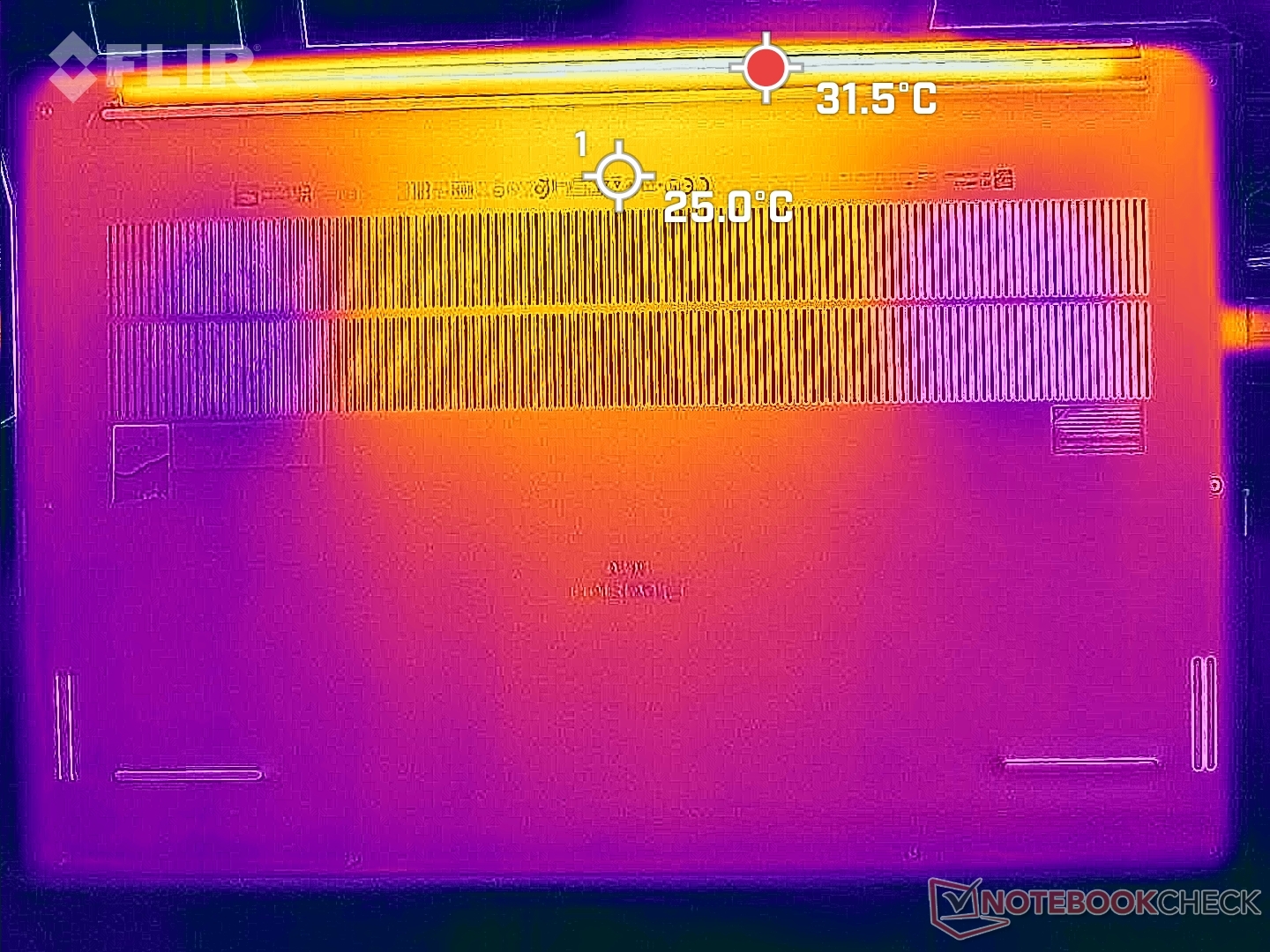 Bij zwaardere belastingen kan het midden van het toetsenbord meer dan 50 C bereiken, terwijl de onderkant nauwelijks warm wordt, deels dankzij de Gore isolatoren. Vingers en handpalmen raken het midden van het toetsenbord slechts zelden aan, dus de warme plekken hebben over het algemeen geen invloed op het comfort.