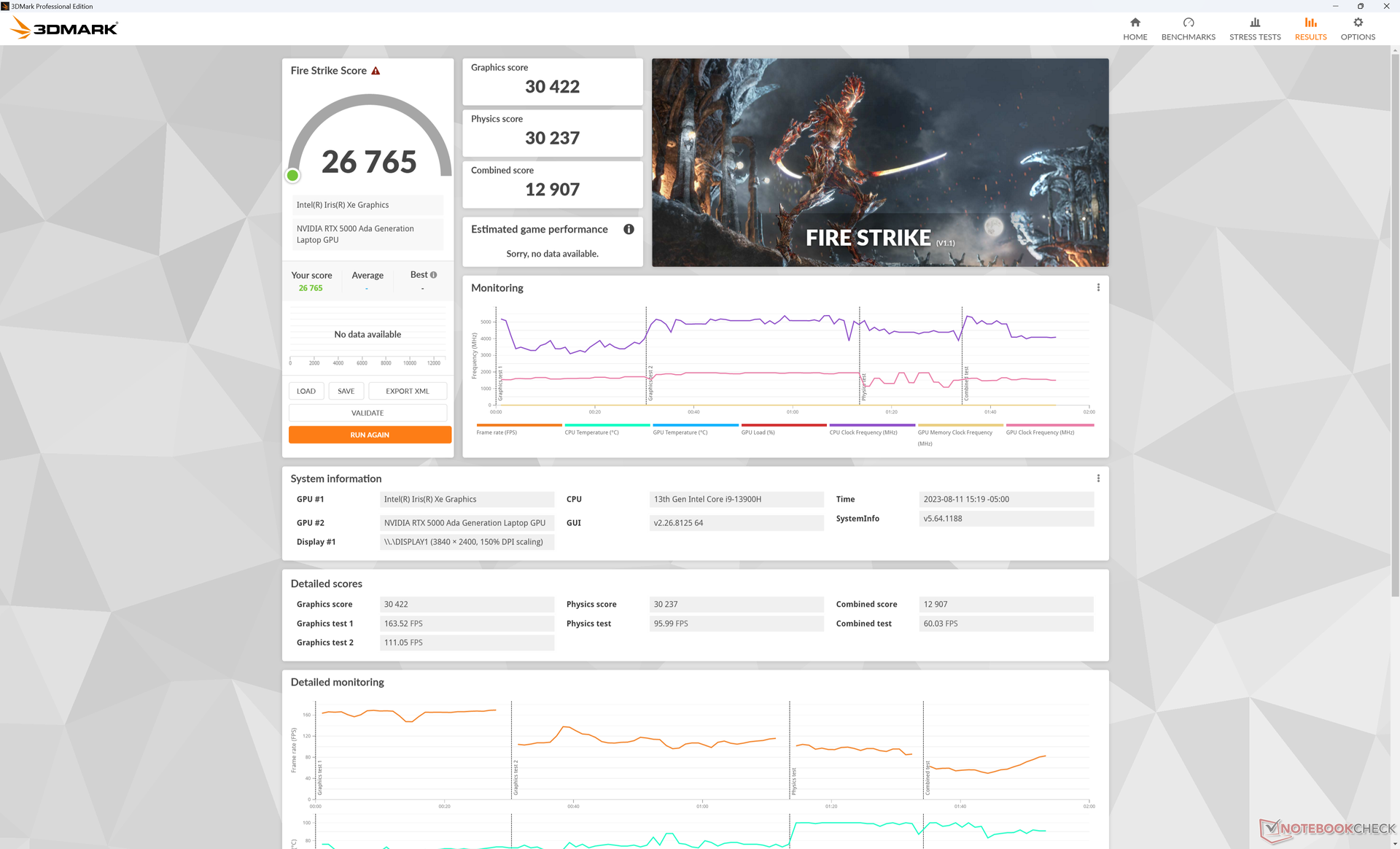 Merk op dat we slechts een maximaal stroomverbruik van 75 W op de GPU-kaart kunnen bereiken, ook al is de TGP-target 95 W volgens het Nvidia Control Panel.