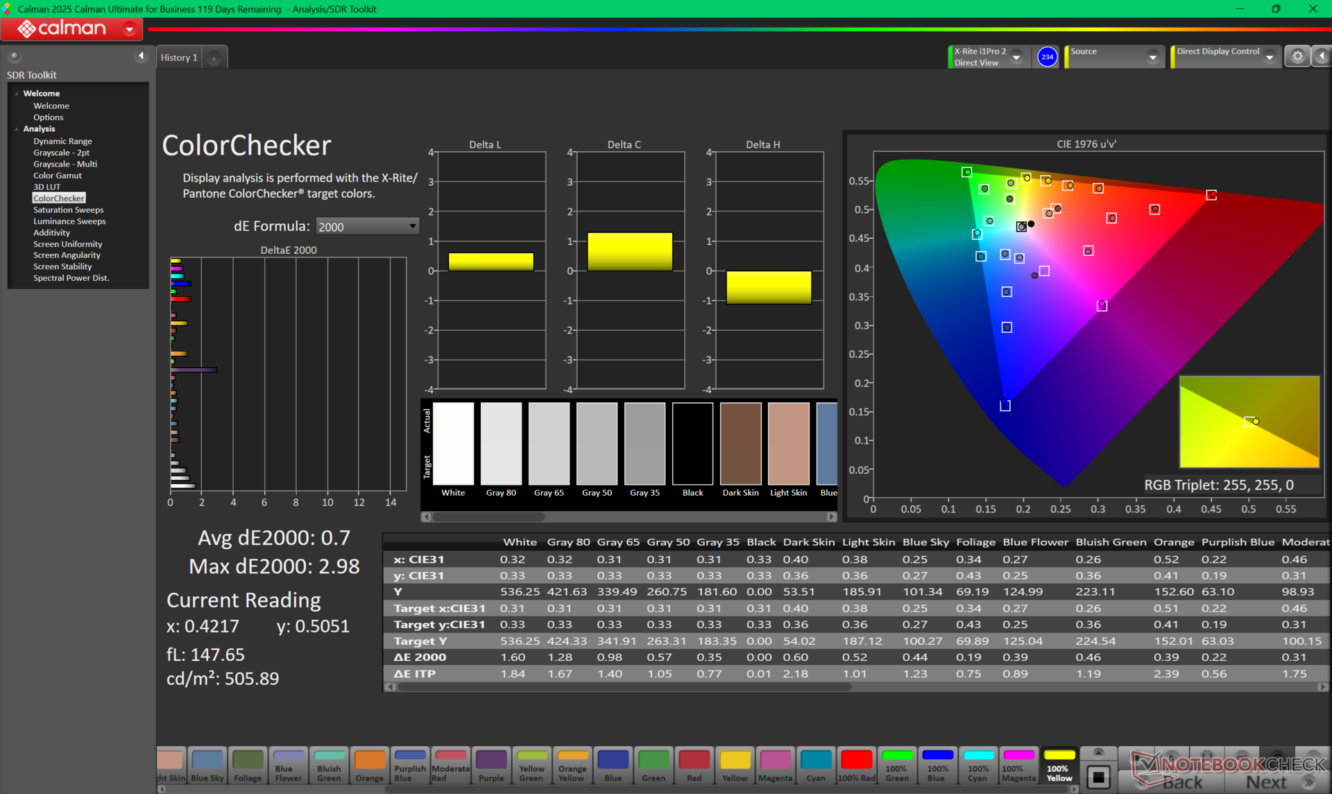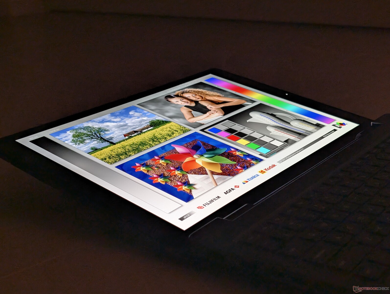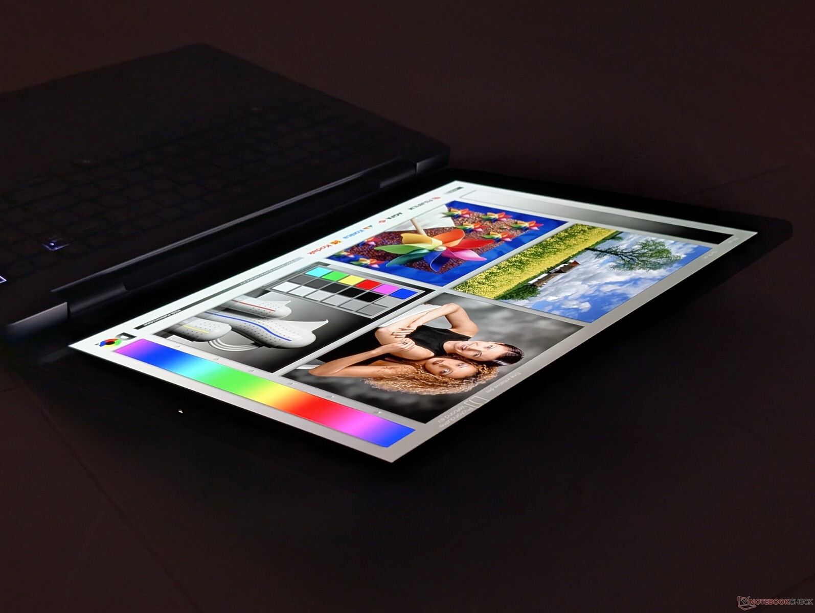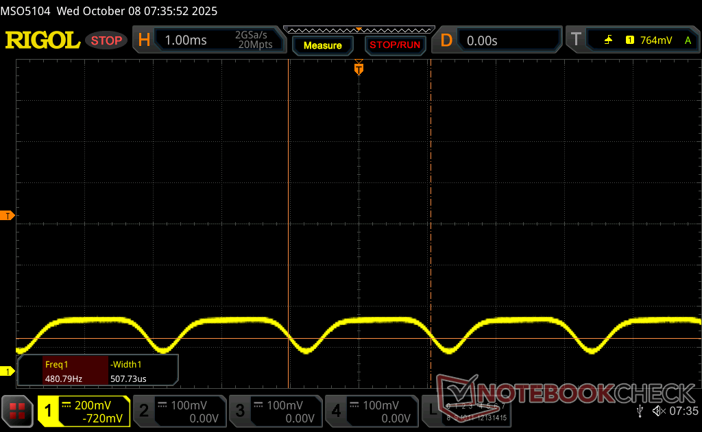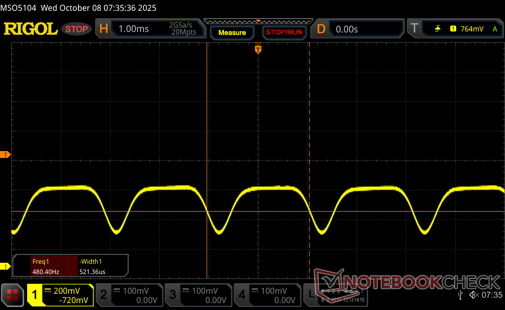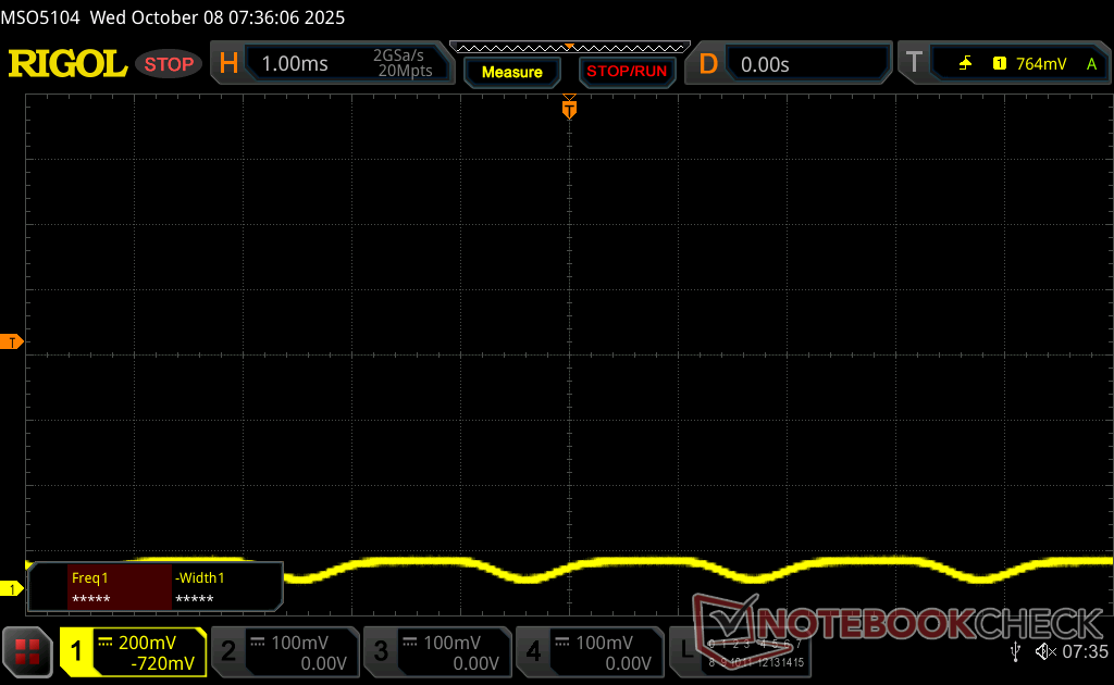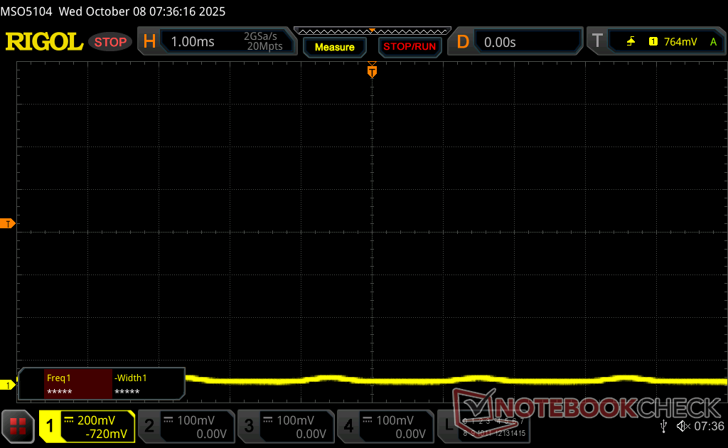 De maximale helderheid komt uit op ~550 nits als de SDR-modus is ingeschakeld of 1066 nits als de HDR-modus is ingeschakeld. 4K HDR-weergave is daarom net zo goed of beter dan de meeste consumentenlaptops op enthousiast niveau.