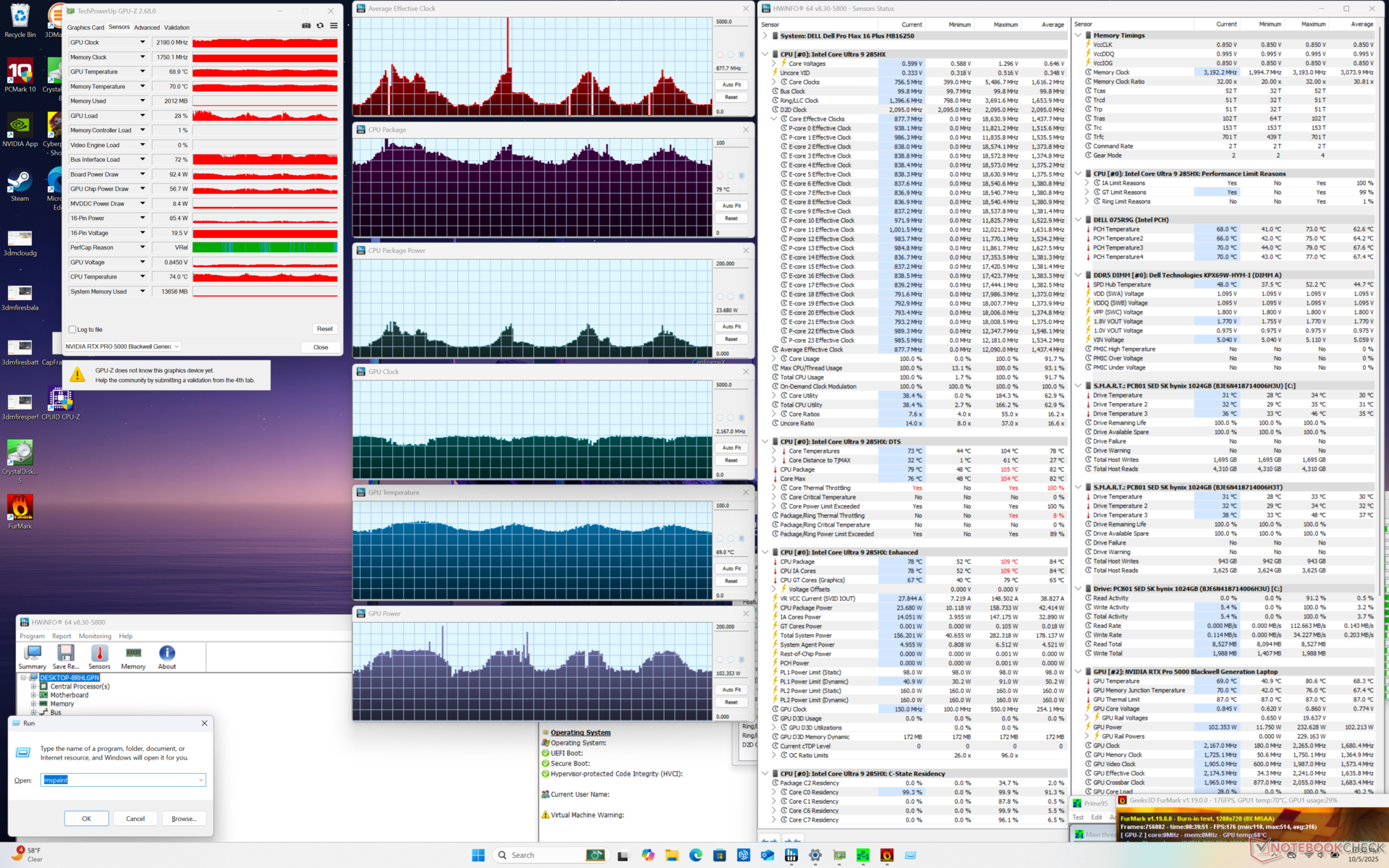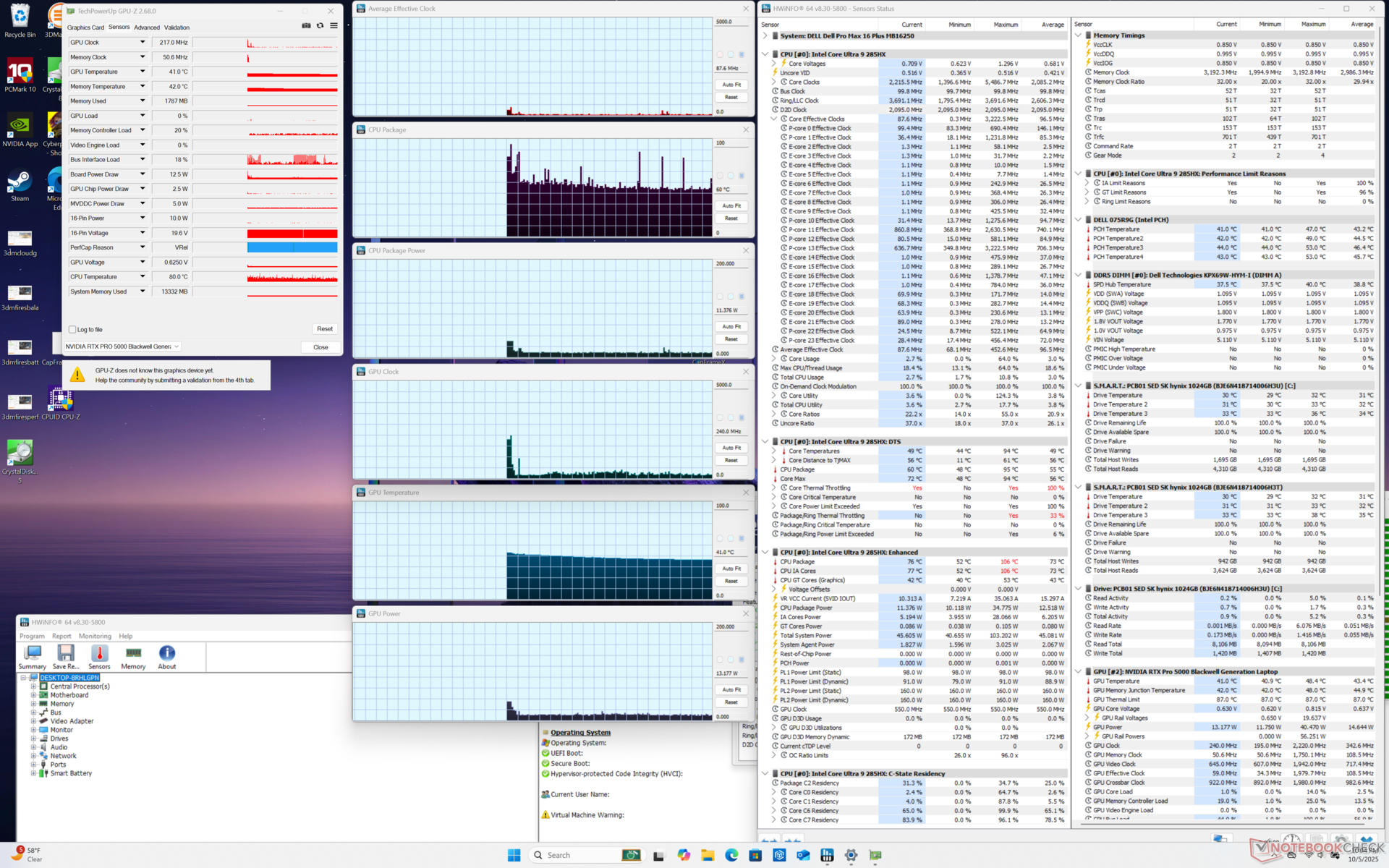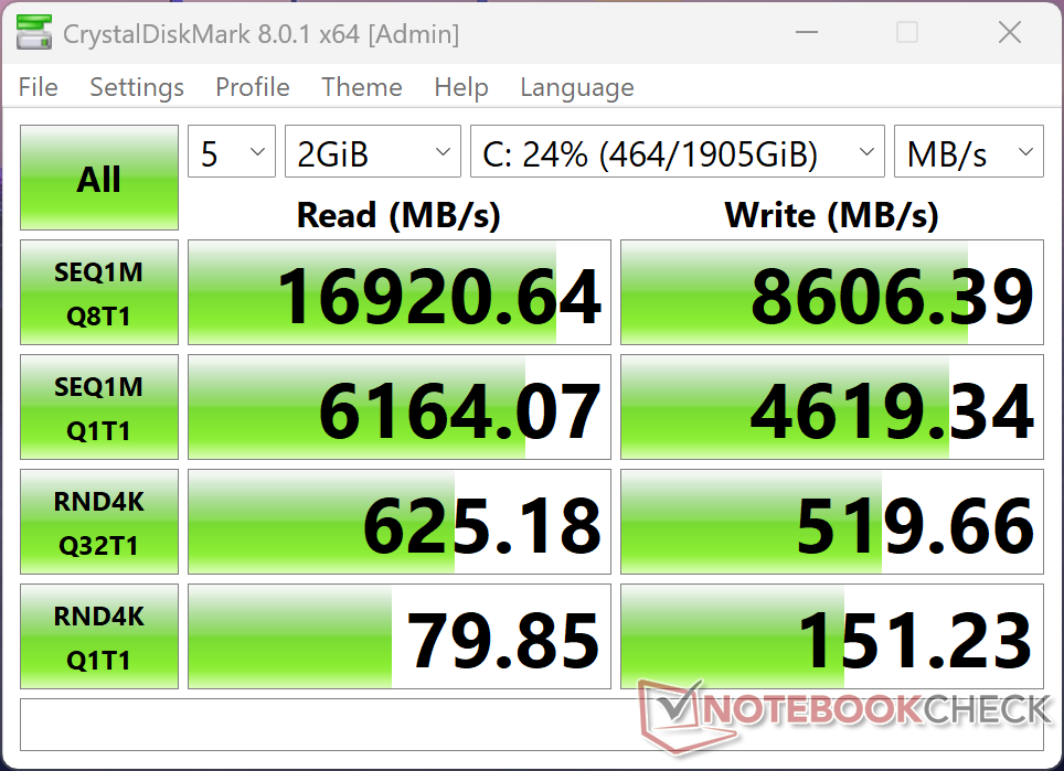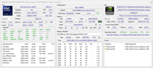 Dell Pro Max 16 Plus Ultra 9 285HX, RTX PRO 5000 Blackwell Generation Laptop, SK hynix PCB01 HFS001TFM9X186N, OLED, 3840x2400, 16" | Dell Precision 5690 Ultra 9 185H, NVIDIA RTX 5000 Ada Generation Laptop GPU, 2x Samsung PM9A1 1TB (RAID 0), OLED, 3840x2400, 16" | Dell Precision 5000 5680 i9-13900H, NVIDIA RTX 5000 Ada Generation Laptop GPU, 2x SK hynix PC801 HFS512GEJ9X101N RAID 0, OLED, 3840x2400, 16" | Lenovo ThinkPad P16 Gen 2 i7-14700HX, NVIDIA RTX 4000 Ada Generation Laptop GPU, SK hynix PC801 HFS001TEJ9X162N, IPS, 2560x1600, 16" | Lenovo ThinkPad P1 Gen 7 21KV001SGE Ultra 7 155H, NVIDIA GeForce RTX 4060 Laptop GPU, Kioxia XG8 KXG8AZNV1T02, IPS LED, 2560x1600, 16" | HP ZBook Studio 16 G11 Ultra 9 185H, NVIDIA RTX 3000 Ada Generation Laptop GPU, Kioxia XG8 KXG80ZNV1T02, IPS, 3840x2400, 16" | MSI CreatorPro Z16P B12UKST i7-12700H, RTX A3000 Laptop GPU, Samsung PM9A1 MZVL21T0HCLR, IPS, 2560x1600, 16" | |
