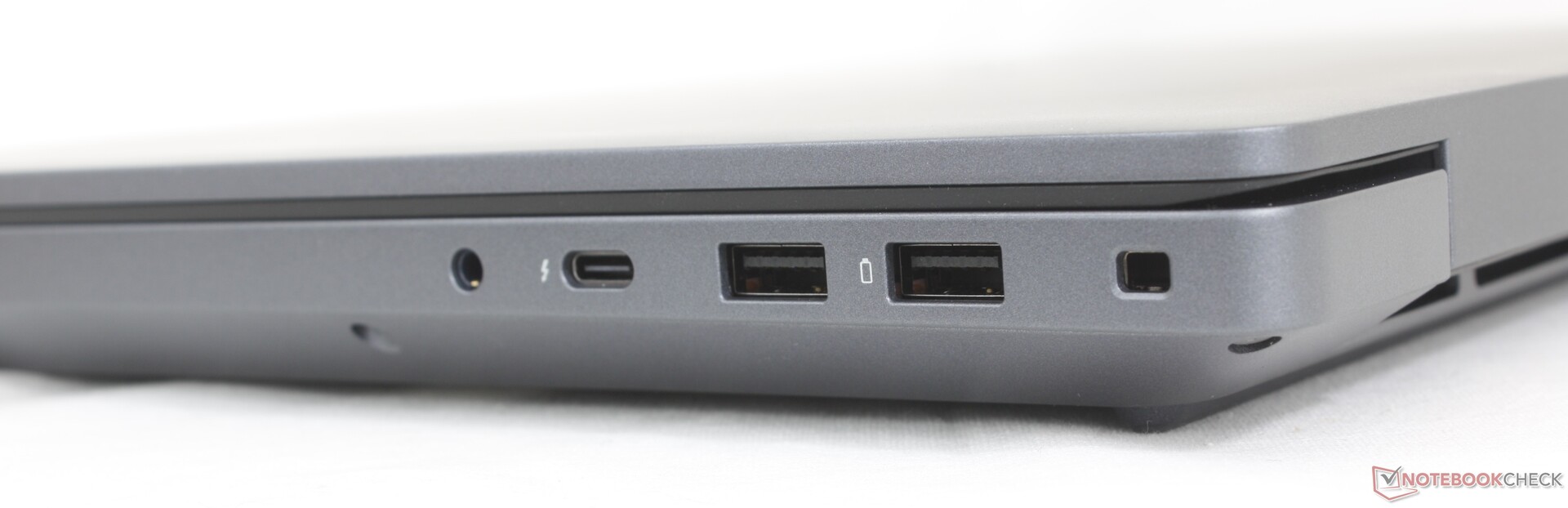 De poortopties zijn grotendeels identiek aan die van de Precision 7680, zij het met enkele belangrijke wijzigingen. De speciale AC-adapterpoort is bijvoorbeeld niet meer aanwezig op de Pro Max 16 Plus, wat betekent dat een van de drie USB-C poorten bijna altijd gebruikt zal worden voor oplaaddoeleinden. Ondertussen is Thunderbolt 5 nu standaard voor meer geavanceerde dockingmogelijkheden.