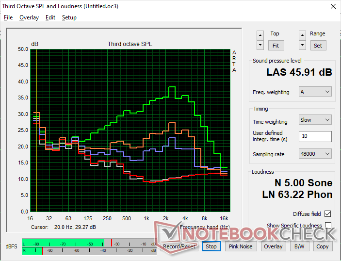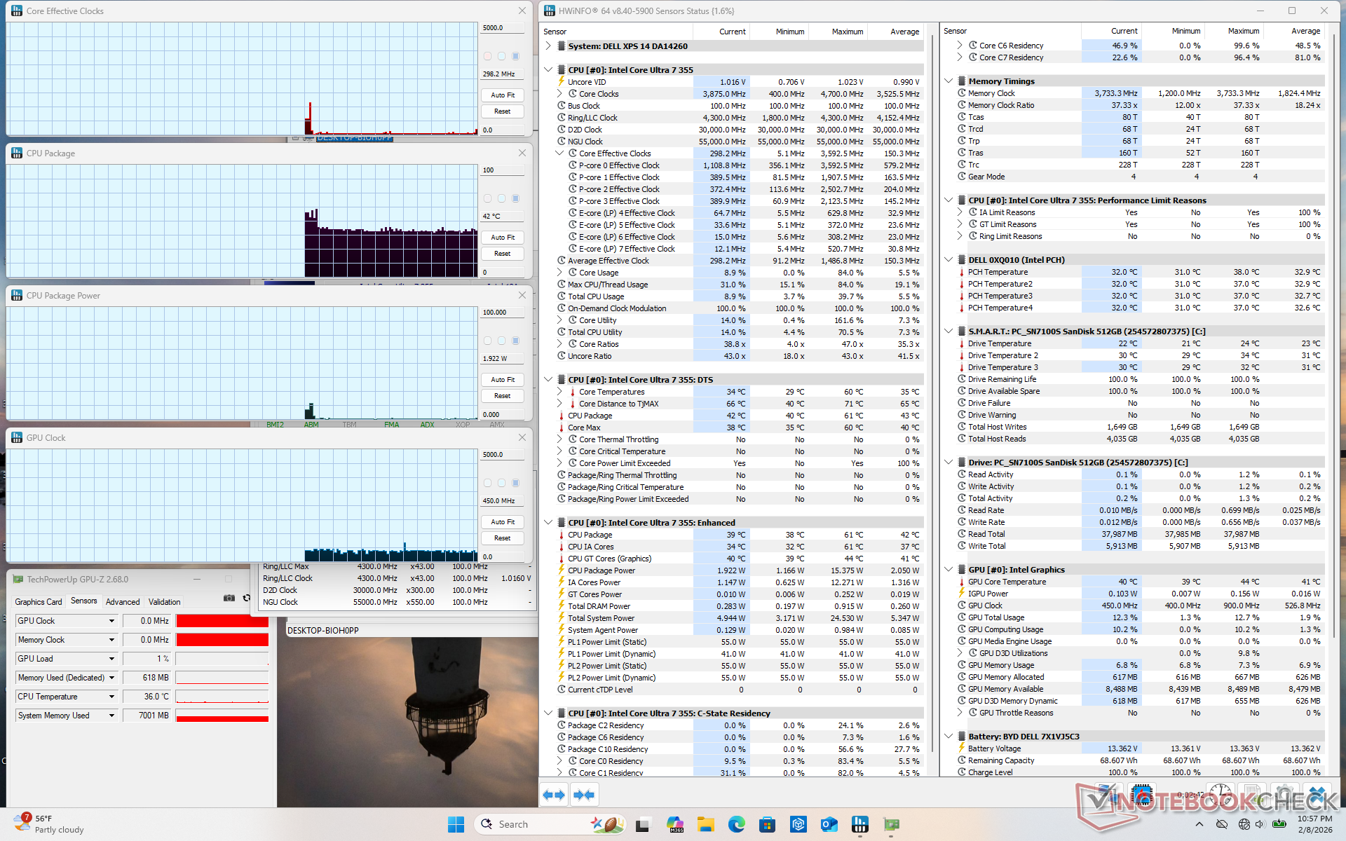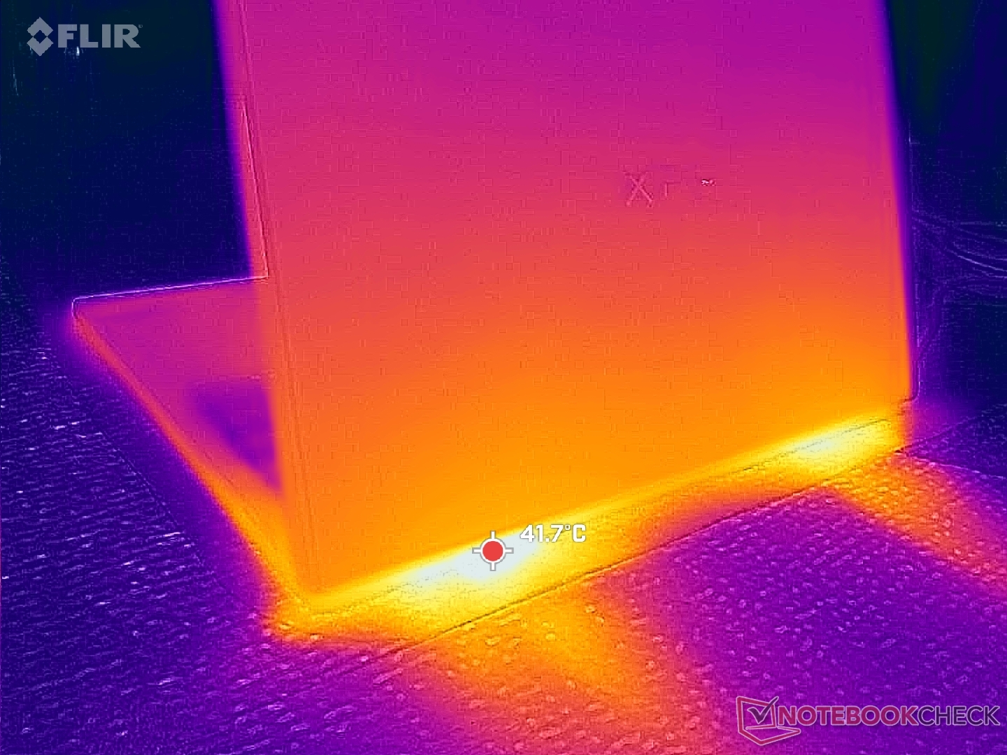 De hotspots met oppervlaktetemperatuur zouden zich stabiliseren op bijna hetzelfde niveau als wat we hebben waargenomen op de XPS 14 X7 configuratie, ondanks de aanzienlijk snellere prestaties van de laatstgenoemde.