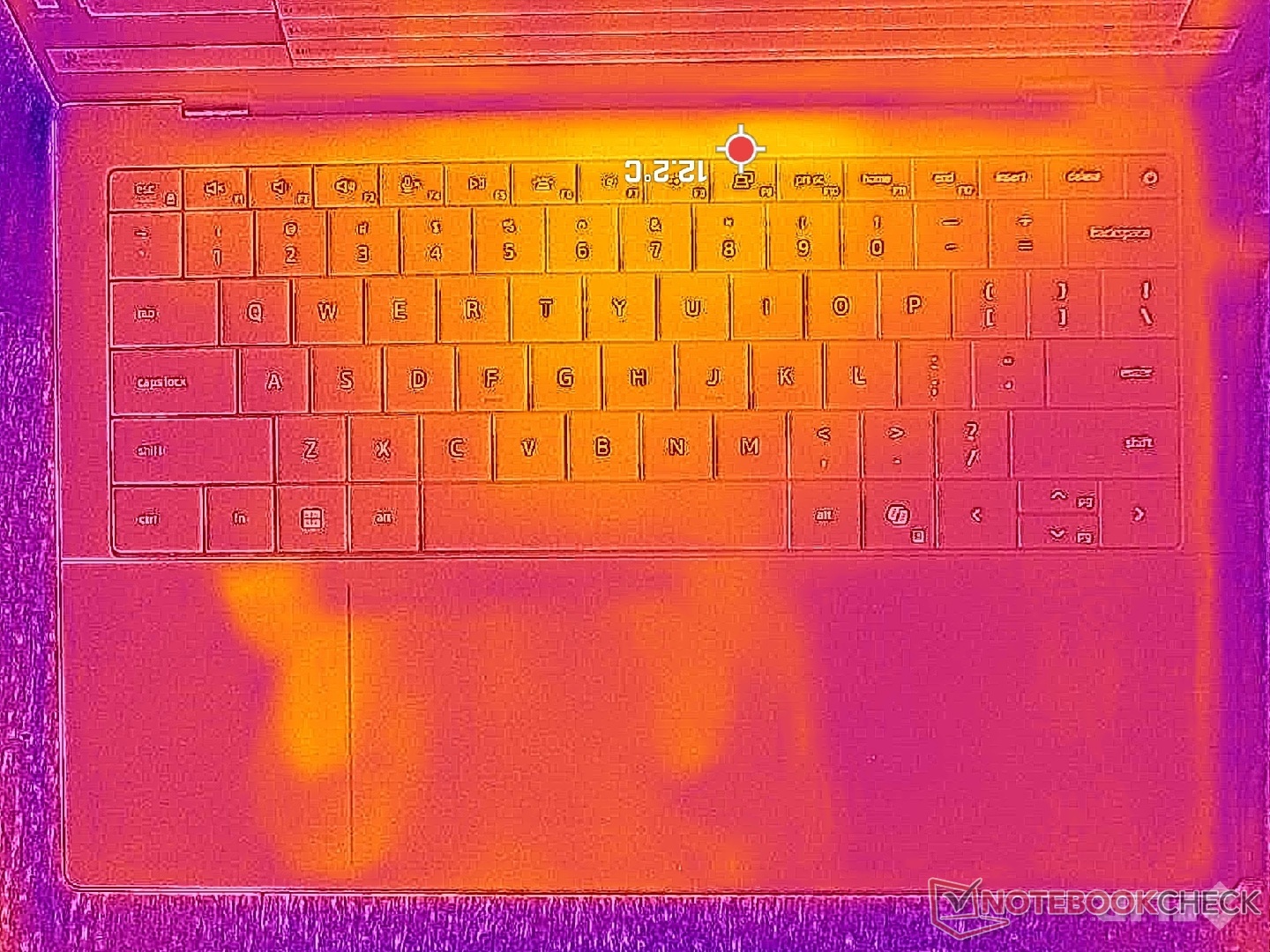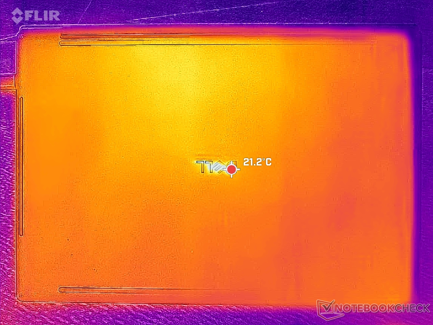 (+) Bij onbelast gebruik bedraagt de gemiddelde temperatuur voor de bovenzijde 20.4 °C / 69 F, vergeleken met het apparaatgemiddelde van 31.3 °C / 88 F.