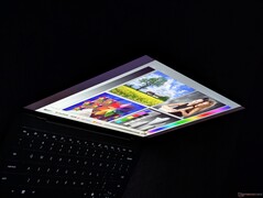 In vergelijking met het OLED-paneel kan het goedkopere IPS-paneel iets helderder zijn in het midden, maar anders iets zwakker rond de randen en hoeken door een slechtere uniformiteit. De contrastverhouding is met meer dan 2000:1 nog steeds erg goed, vooral voor een IPS-paneel, en terwijl Windows VRR wordt ondersteund tot slechts 1 Hz tijdens inactiviteit, in tegenstelling tot 20 Hz of meer op de meeste andere laptops. Merk op dat deze functie standaard is uitgeschakeld en handmatig moet worden ingeschakeld.
