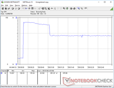 Toch zorgt de hogere prestatie-per-watt van Ada Lovelace versus Ampere ervoor dat de XPS 17 9730 nog steeds beter presteert dan het model van vorig jaar bij hetzelfde vermogen. Het draaien van Witcher 3, bijvoorbeeld, verbruikt ongeveer 114 W op zowel de XPS 17 9720 als 9730, ondanks dat de laatste 30 procent snellere grafische prestaties biedt. CPU stroomverbruik zou ook stabieler zijn met zijn langere Turbo Boost duurzaamheid ten opzichte van de Core i7-12700H zoals hierboven vermeld. Dell heeft zeker de CPU en GPU zo goed mogelijk geoptimaliseerd om binnen het beperkte stroombudget te passen.