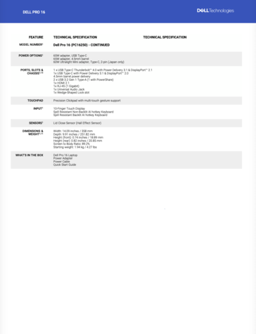 De twee laptops kunnen ook geconfigureerd worden met verschillende schermopties, hoewel het allemaal 16:10, 1200p en 60 Hz panelen zijn. Ondertussen heeft Dell een M.2 2230 SSD, zelfs in het grotere 16-inch model, en een keuze tussen 45 Wh of 55 Wh batterijen. Bovendien hebben de Pro 14 en Pro 16 dezelfde poorten: