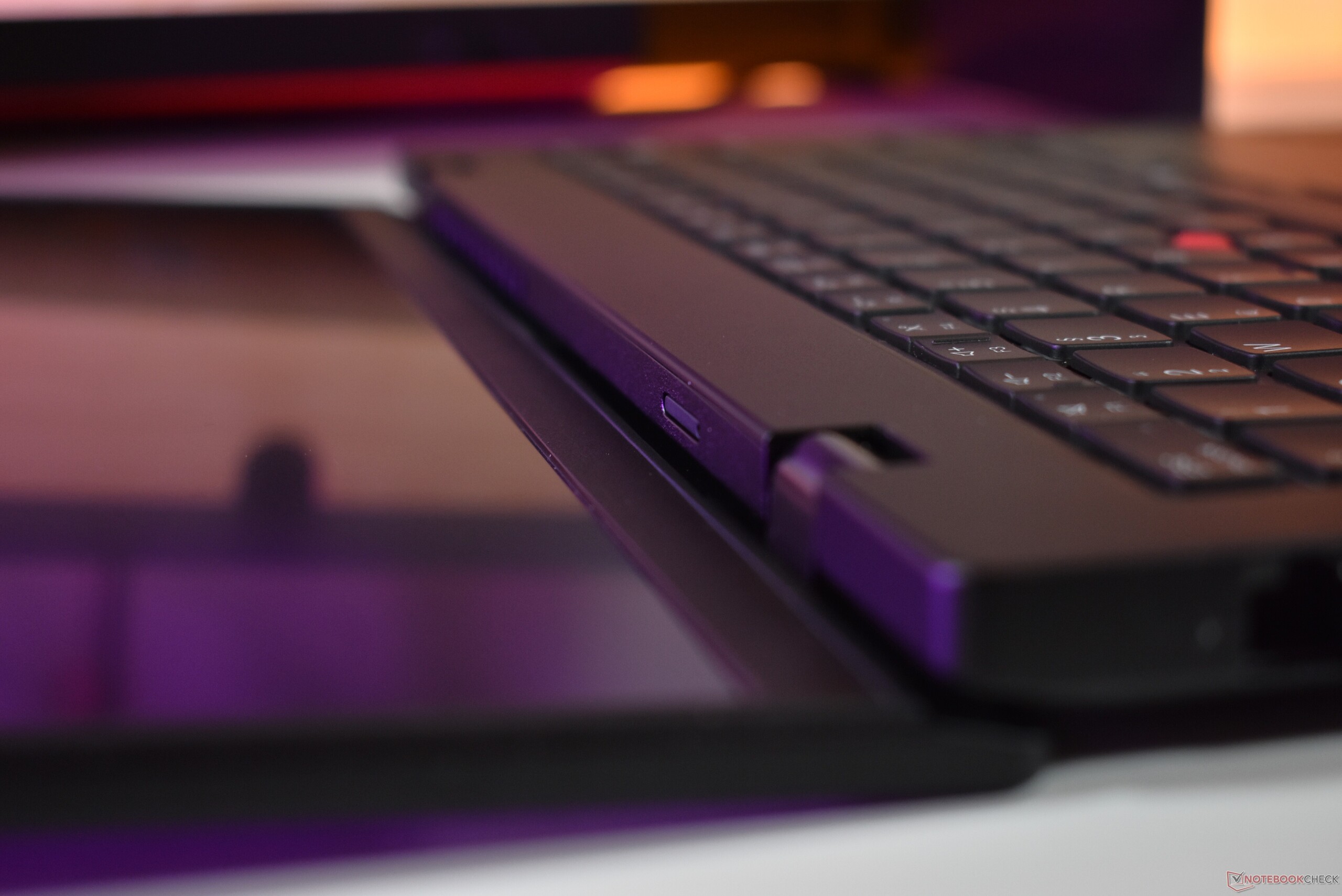 Lenovo gebruikt dezelfde metalen scharnieren als op de ThinkPad T14. Ze maken een openingshoek van 180 graden mogelijk en er is weinig last van wiebelen, maar het is niet mogelijk om het deksel met één hand te openen.