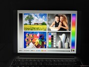De kwaliteit van het aluminium chassis is boven alle peil. Het buigt of verdraait niet gemakkelijk, en vooral de voet geeft niet mee. Natuurlijk heeft aluminium de neiging om sneller deuken te maken dan magnesium of plastic, maar het metaal voelt voortreffelijk aan. Bovendien laat het zilverkleurige aluminium helemaal geen vingerafdrukken achter. We hebben slechts één klein puntje van kritiek op het chassis: Het scherm kan niet met één hand geopend worden, en het wiebelt een beetje.