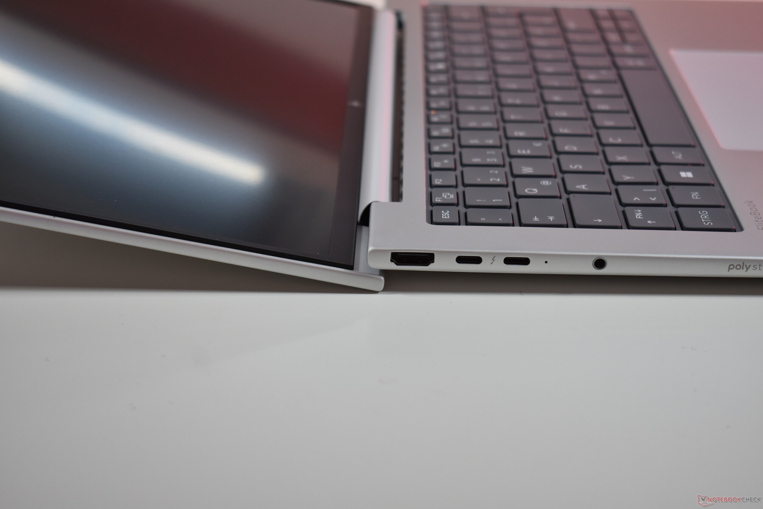 HP heeft de poortkeuze van zijn EliteBook-lijn zorgvuldig gemoderniseerd door een van de USB-A poorten te vervangen door een USB-C poort. Voordeel: Nu is het mogelijk om het apparaat vanaf beide kanten op te laden. De nieuwe USB-C aan de rechterkant biedt echter niet helemaal dezelfde mogelijkheden als de USB-C aan de linkerkant, omdat de Thunderbolt 4-functie ontbreekt.