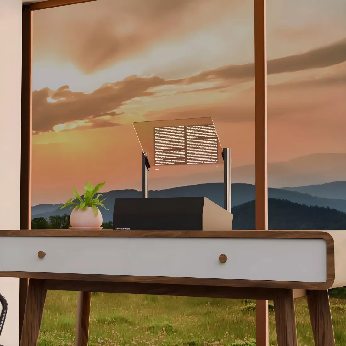 De truc hierbij is dat de gebruiker een reflectie ziet van het geprojecteerde beeld op het glas, dat transparant blijft. Dit wekt de illusie dat de afbeeldingen in de lucht zweven. Visual Instruments vergelijkt het ontwerp met head-up displays (HUD's) in sommige moderne voertuigen.