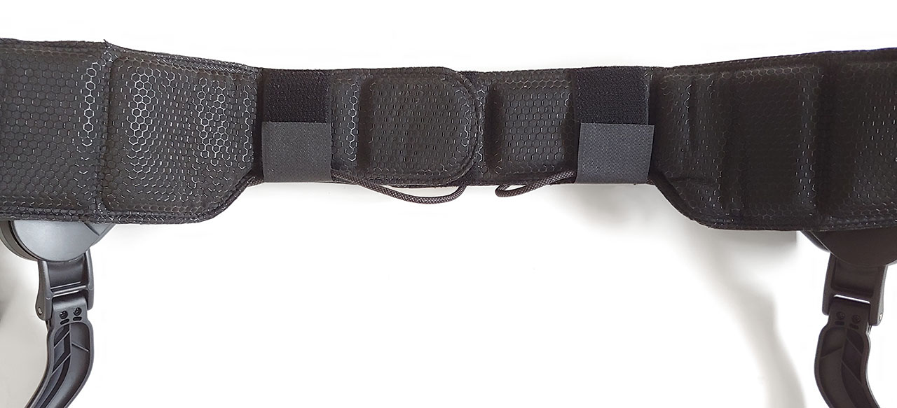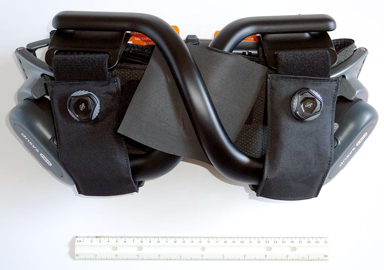 Er zijn twee handen nodig om de riem aan te trekken, die moet worden aangepast om de motoren op de bekkenkammen van de heupen te plaatsen. Blootgesteld klittenband aan de achterkant van de riem kan irritatie veroorzaken, dus het dragen van een shirt is het beste. De spanning van de beenriemen moet vervolgens in evenwicht gebracht worden omdat een slechte pasvorm een onevenwichtige krachtafgifte veroorzaakt.