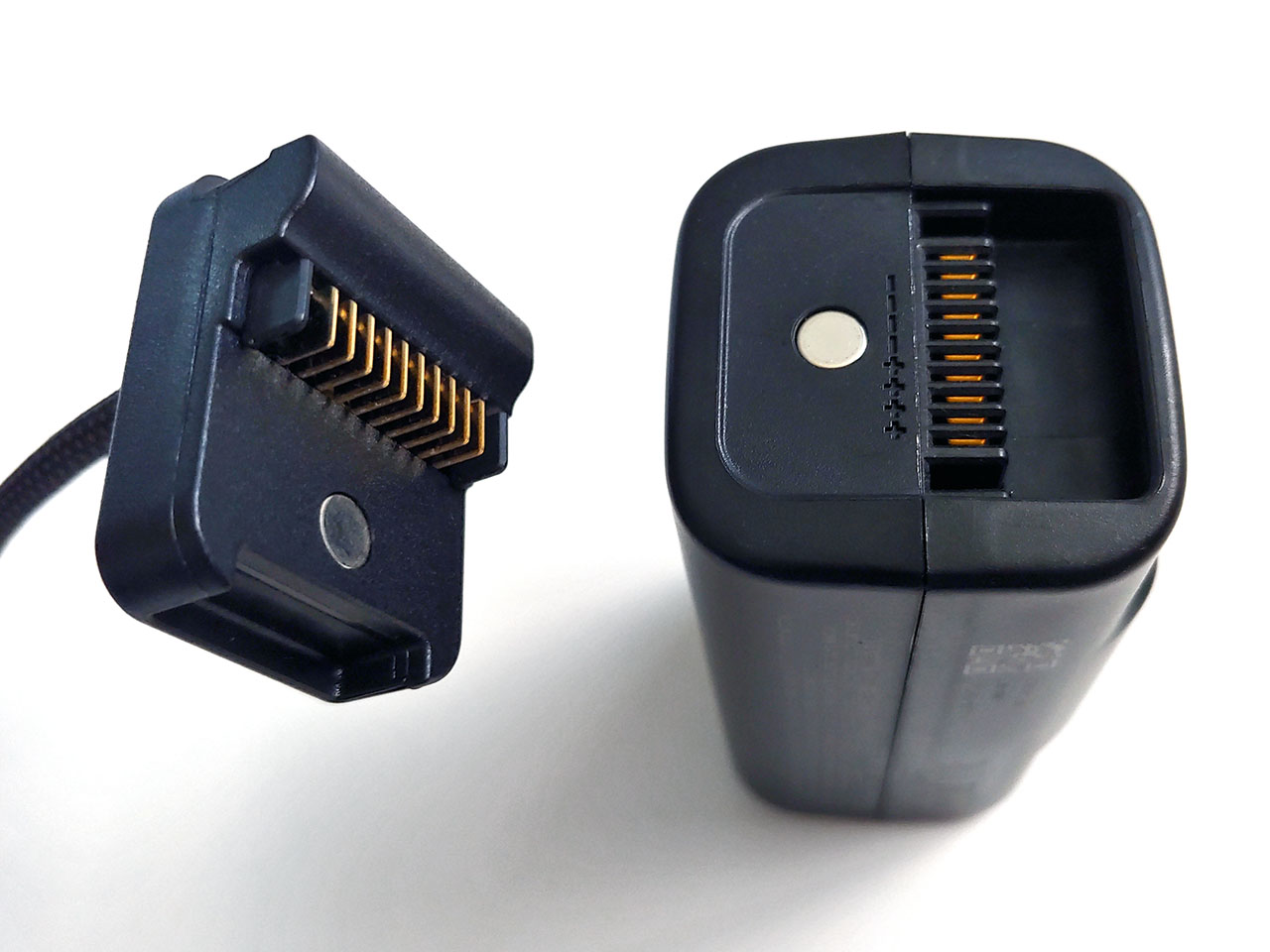 De stroomkabel kan in noodgevallen snel worden losgekoppeld en de accu kan snel worden losgemaakt en verwijderd. Linkshandigen vinden de batterij aan de rechterkant.