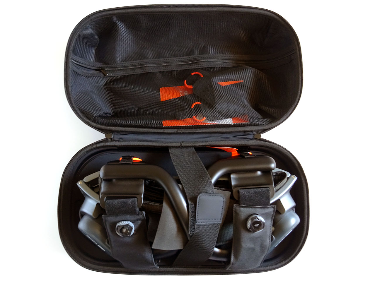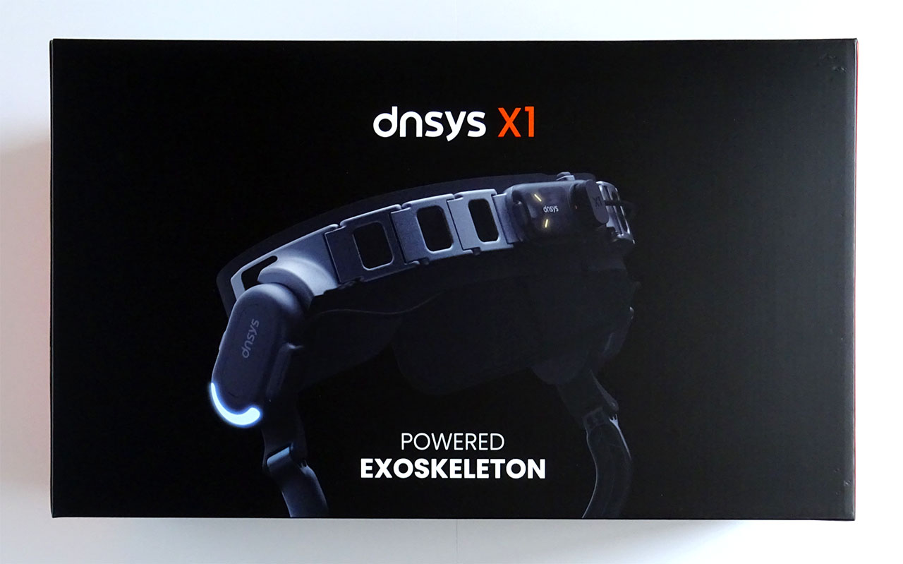 Het exoskelet werd geleverd in een harde koffer met een handleiding, oplaadadapter, oplader, USB-kabel, voedingskabel, twee batterijen en twee sets riemen.