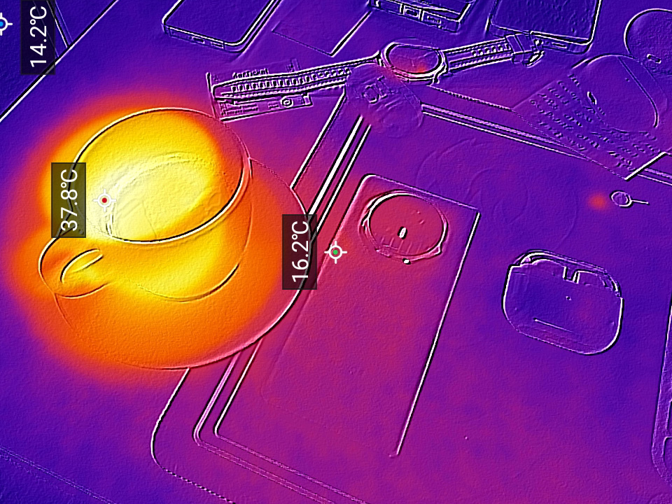 De warmtebeeldcamera van de Fire 6 levert behoorlijke prestaties. In vergelijking met onze IR-thermometer wijken de weergegeven oppervlaktetemperaturen echter ongeveer 4 °C (7 °F) af, soms zijn ze hoger en soms lager.