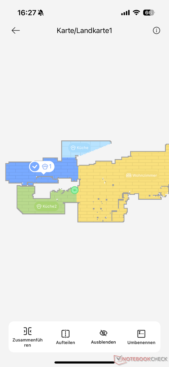 De app biedt vele opties voor het beheren van de robotstofzuiger. Naast verschillende instellingen voor de schoonmaakprestaties (zuigkracht, vochtigheid, route en meer), biedt de app een uitgebreid overzicht van het schoonmaakproces en mogelijke probleemgebieden op de gebruikelijke manier via de virtuele kaart. Natuurlijk kunnen de plattegronden (die ook voor meerdere verdiepingen kunnen worden opgeslagen) worden bewerkt, bijvoorbeeld om afzonderlijke kamers een naam te geven en virtuele grenzen te creëren.