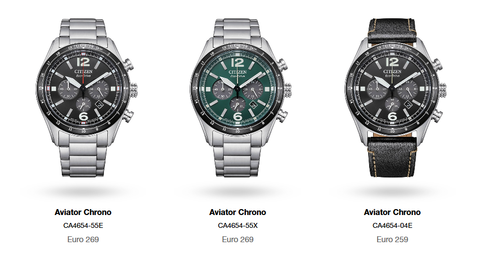 In Europa wordt het Citizen OF Collection CA4654-04E aviatorhorloge verkocht voor €259, terwijl de horloges met metalen band CA4654-55E en CA4654-55X met €269 iets duurder zijn. Ze zijn verkrijgbaar via erkende Citizen-dealers op deze markt.
