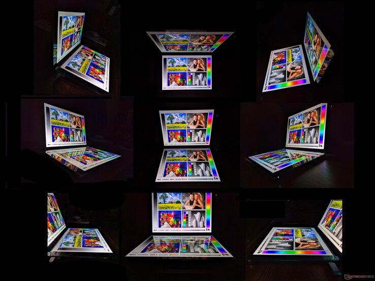 Hoewel het ontwerp van de Yoga Book 9i 2-in-1 bijzonder is, zijn de OLED-panelen dat niet. De twee Samsung ATNA33AA02 panelen op dit model zijn ook te vinden op zowel de ThinkPad Z13 G1 als de ThinkPad X1 Carbon G10, wat betekent dat alle drie deze modellen een zeer vergelijkbare beeldkwaliteit bieden. Het is nog steeds een high-end paneel met volledige DCI-P3 kleuren en perfecte zwartniveaus, maar de 60 Hz verversingssnelheid voelt beperkend aan. De Asus VivoBook Pro 14 en HP Pavilion Plus 14hebben bijvoorbeeld 90 Hz OLED opties.