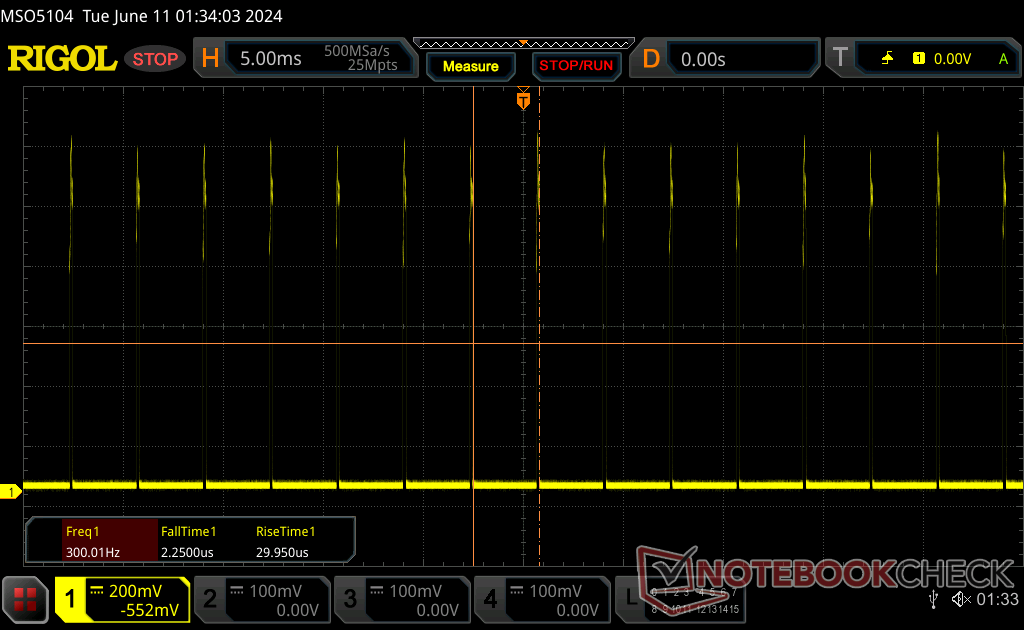 Stationair draaien op de desktop vraagt tussen de 4 W en 16 W en is duidelijk hoger dan bij de 2020 S15ABG2. Het hogere verbruik kan echter worden toegeschreven aan het veel helderdere beeldscherm van onze S15, waar het verschil tussen minimale helderheid en maximale helderheid ongeveer 10 W is.