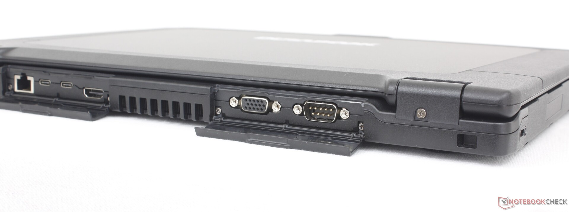De beschermende kleppen die de poorten afdekken zijn veel gemakkelijker te openen en te sluiten dan de kleppen op de Getac S410. Het is een klein detail dat de Durabook wat gebruiksvriendelijker maakt in het veld.