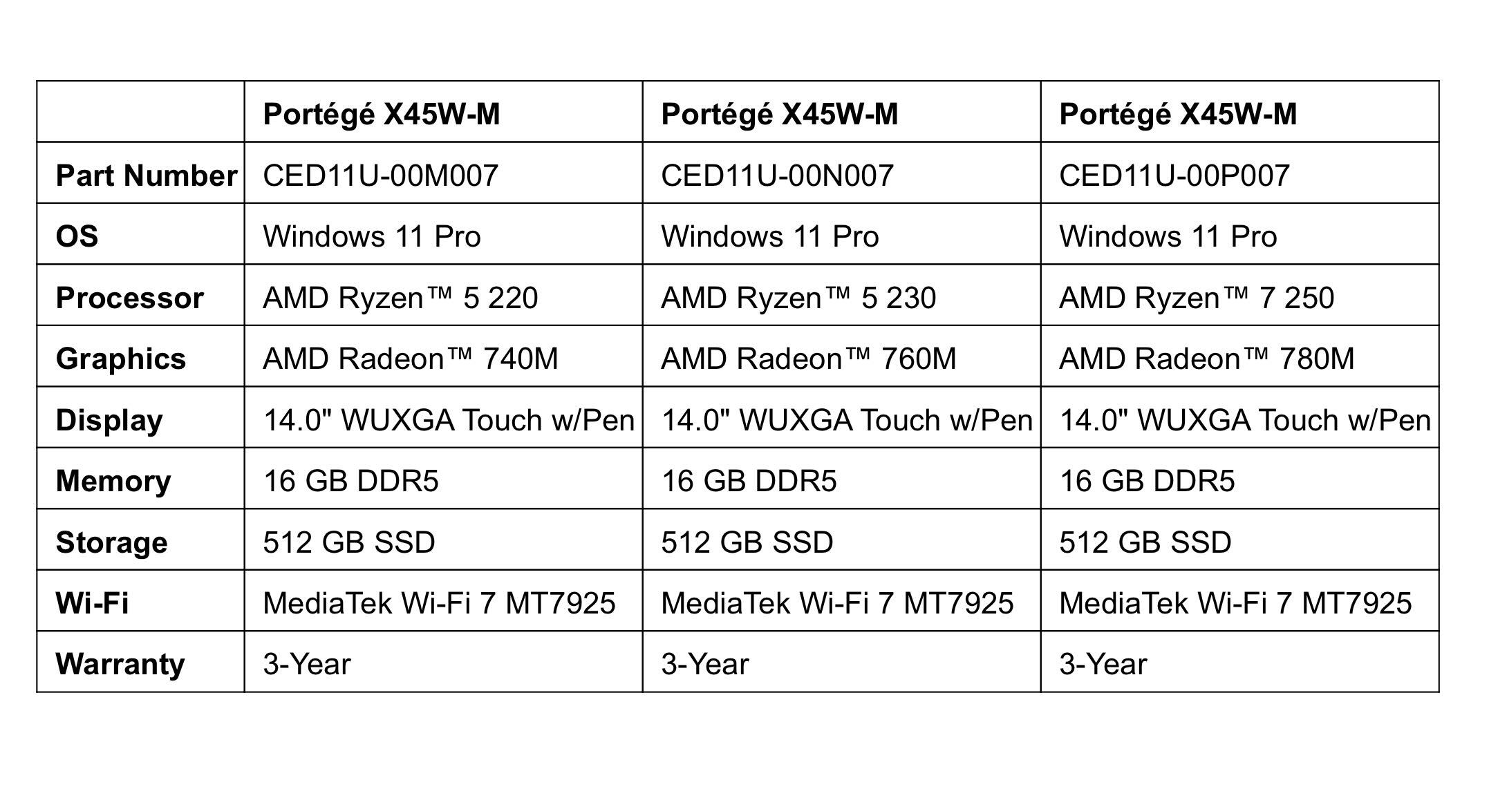 De Protege X45W laptop kan worden uitgerust met maximaal de AMD Ryzen 7 250 APU, met 8 cores en 16 threads. De APU is lid van de oude Hawk Point familie. Het zal u niet verbazen dat de Zen 4 kernen hun leeftijd beginnen te tonen, maar ze zouden goed genoeg moeten zijn voor multicore prestaties. Er zullen ook goedkopere varianten met de Ryzen 5 220 en Ryzen 5 230 beschikbaar zijn.