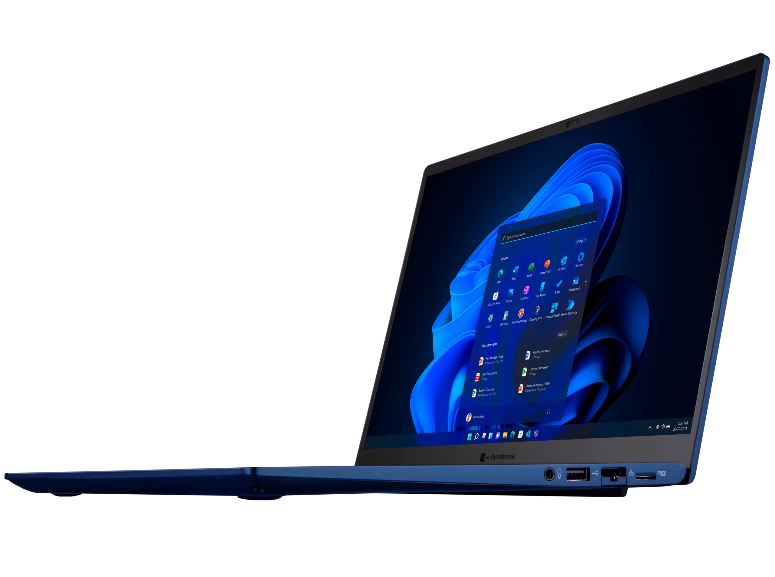 Het profiel van het chassis meet nu 15,9 mm en de notebook weegt slechts 2,3 lbs. Ondanks het ultradunne uiterlijk is het stijlvolle Tech Blue magnesiumlegering chassis van de Portégé X40L-K ontworpen om te voldoen aan de strenge MIL-STD-810H normen voor sterkte en duurzaamheid