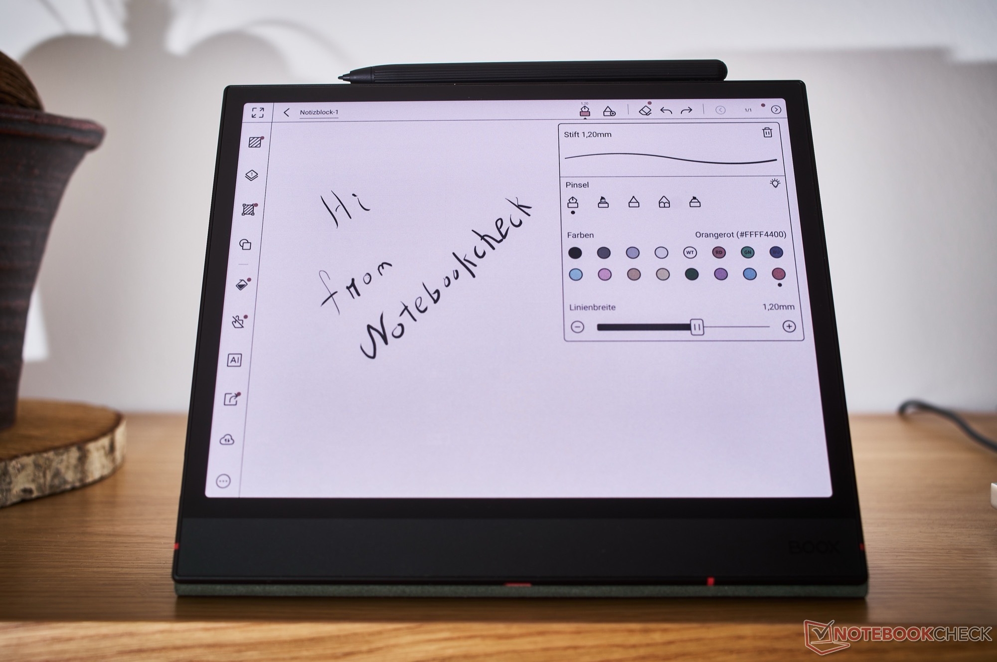 Het pronkstuk van de tablet is het 10,3 inch E-Ink scherm op basis van een Kaleido 3 paneel, dat 4.096 kleuren kan weergeven. In kleurmodus geeft het scherm 1.240 × 930 pixels weer bij 150 PPI; bij weergave van alleen zwart-wit content springt de resolutie naar 2.480 × 1.860 pixels. Het paneel is snel genoeg om soepel door apps en websites te scrollen, maar het is nog steeds slecht geschikt voor het afspelen van video's omdat nabeelden te lang blijven hangen.