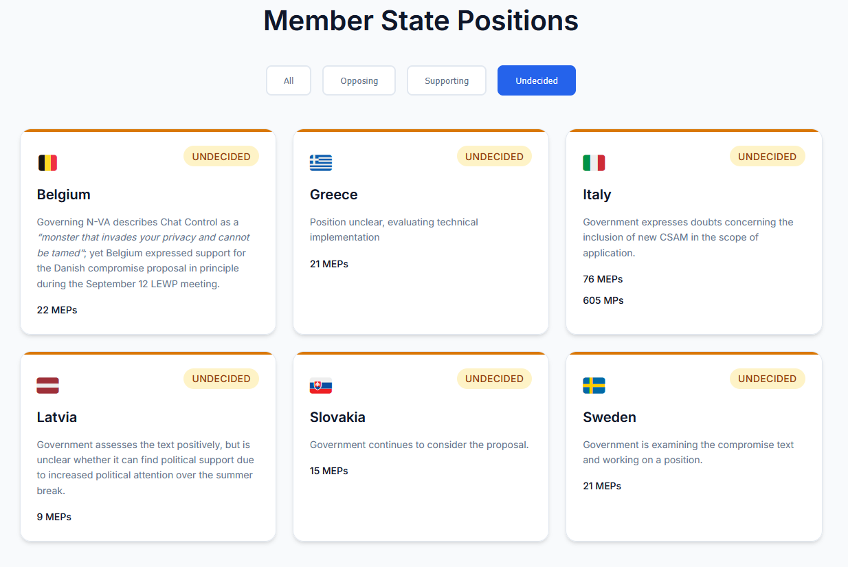 Nationale ambtenaren in de werkgroep Rechtshandhaving van de Raad kwamen op 12 november bijeen en hebben, volgens meerdere beleidsbriefings en berichtgeving in de media, brede steun betuigd aan een herzien compromis onder leiding van Denemarken over de EU-verordening inzake seksueel misbruik van kinderen (vaak "Chat Control" genoemd). Het ontwerp schrapt expliciete, verplichte opsporingsbevelen, maar voegt artikel 4 verplichtingen voor "risicobeperkende maatregelen" toe. Deze wijziging zal nu naar verwachting ter overweging worden voorgelegd aan COREPER (de ambassadeurs van de EU-landen, oftewel het Comité van Permanente Vertegenwoordigers)