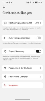 Er zijn echter ook zwakke punten: de batterijlevensduur met ANC actief is slechts gemiddeld (ongeveer 5,5 uur), en bij gebruik van LDAC + ANC neemt deze nog verder af. De ANC zelf is, vooral in winderige of zeer lawaaierige omgevingen, niet altijd helemaal overtuigend. Over het geheel genomen levert de Ear (3) echter een coherent totaalpakket.