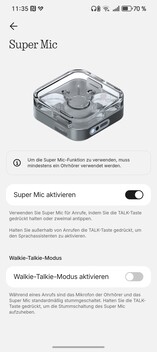 Bij het voeren van gesprekken in rustige omgevingen levert de hoofdtelefoon van Nothing een behoorlijke prestatie. In drukkere omgevingen bereiken ze echter al snel hun limiet. Hier komt Super Mic om de hoek kijken: deze is voornamelijk geoptimaliseerd voor spraak- en videogesprekken en werkt met populaire apps zoals Zoom, Teams, Google Meet, WhatsApp en WeChat. Voor opnames wordt het ondersteund door native spraakmemo-apps (bijv. iOS Voice Memos) en video-apps van derden, zoals Blackmagic. Het is niet geoptimaliseerd voor in-app spraakberichten (bijv. WhatsApp, WeChat, Snapchat) of standaard video-opname op Android / iOS, waarbij in plaats daarvan de smartphone-microfoons worden gebruikt. Tijdens telefoongesprekken reduceert de extra ruisonderdrukkende microfoon in de behuizing omgevingsgeluid tot een minimum, en de grote spraakmicrofoon zorgt voor een uitstekende helderheid en is ideaal voor communicatie.