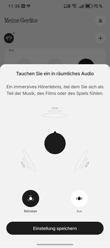 De app kan onder andere worden gebruikt om firmware-updates te installeren, de gewenste audiocodec te selecteren en voorgedefinieerde of aangepaste equalizers te gebruiken. Het biedt ook de mogelijkheid om ruimtelijke audio, de Super Mic, ruisonderdrukking, transparantiemodus en in-ear bediening naar wens te configureren.