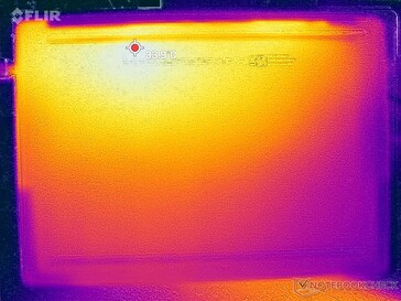 De oppervlaktetemperaturen zijn warmer aan de rechterhelft van de laptop dan aan de linker, door de plaatsing van de processor binnenin. Bij hoge belasting, zoals bij games, kunnen de warmste plekken aan de achterkant van het chassis wel 10 tot 14 C warmer zijn dan de koelste plekken aan de voorkant van het chassis.